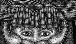 His work is known for the use of black, white and red and simple graphic elements visualized in the form of character as a person or a monster. He seeks to portray the anger, the fear, and the sadness that transgress at a subconscious level through our minds during nightmares that are represented visually as creatures, seemingly soft and cute, and at times abstractions of this form.